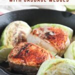 - Place the cabbage wedges into the pan after the meat has been flipped. Cook for a few minutes on each side until the cabbage turns golden on the outside and becomes tender and the por reaches an internal temperature of 145°F