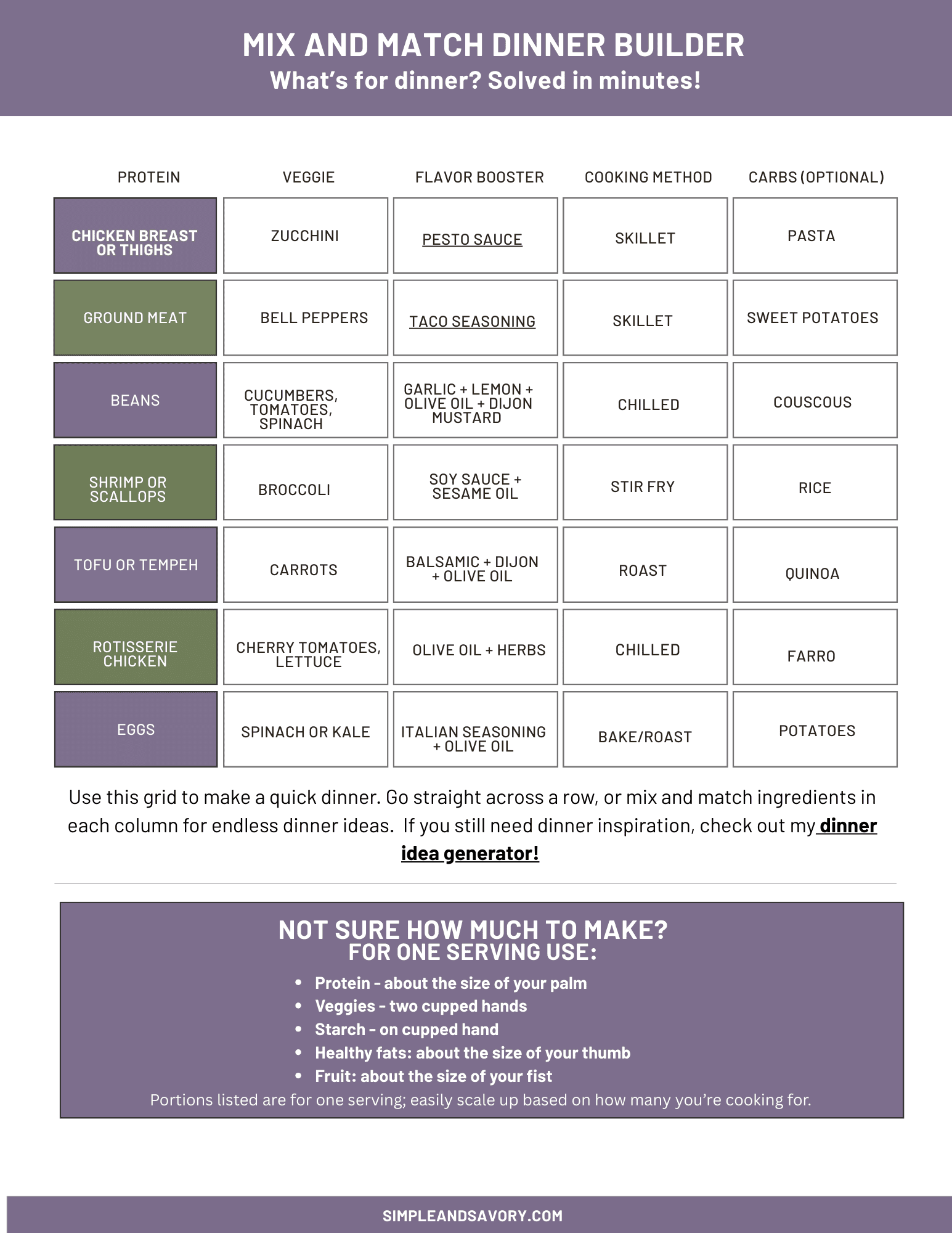 ✅ Simple mix-and-match dinner chart and veggie chart